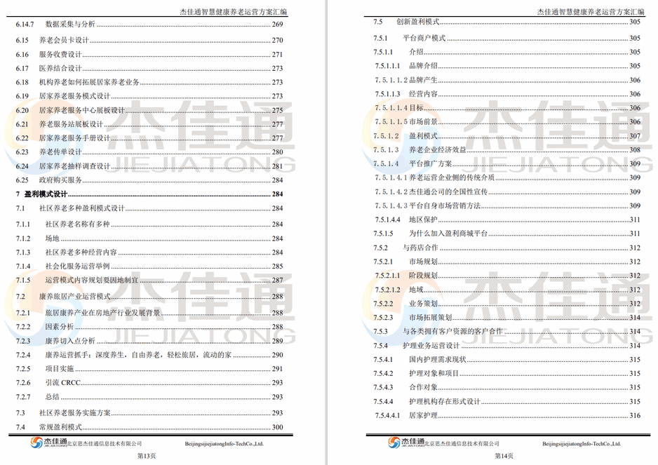 本養(yǎng)老運(yùn)營(yíng)方案凝聚了杰佳通工程師們16年的心血,總結(jié)出了居家養(yǎng)老、機(jī)構(gòu)養(yǎng)老、社區(qū)養(yǎng)老運(yùn)營(yíng)過(guò)程中團(tuán)隊(duì)組建、運(yùn)營(yíng)設(shè)計(jì)、方案設(shè)計(jì)、活動(dòng)設(shè)計(jì)、老人心里分析、各種環(huán)境下的養(yǎng)老運(yùn)營(yíng)盈利模式等等,方案每月都在更新,目前已經(jīng)更新到近千頁(yè),方案精細(xì),細(xì)致到在社區(qū)如何組織老人活動(dòng),如何書(shū)寫(xiě)宣傳語(yǔ),如何和老人簽訂協(xié)議,即使你是“0”基礎(chǔ)入門(mén)養(yǎng)老,也可以讓您快速上手,快速盈利;既避免了您少走彎路,又避免了在簡(jiǎn)單事情上浪費(fèi)時(shí)間,充分把杰佳通智慧養(yǎng)老平臺(tái)的精髓融入到養(yǎng)老運(yùn)營(yíng)中。